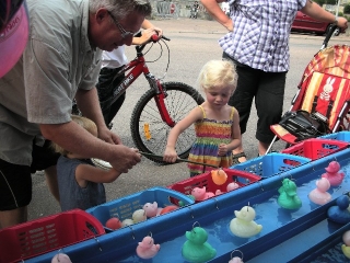 The sticks had strings. The strings had round hooks. They weren’t sharp and didn’t have to be. The floating ducks had loops on their backs. A hook would catch a loop and the duck would be lifted from the water. “I got a prize,” a child would say, giggling. (Actually, the child would say, “J'ai obtenu un prix,” but I don’t speak French very well, and Nicker even less, but Pierre helped us to understand what they were saying, and “J'ai obtenu un prix” means “I got a prize!”)