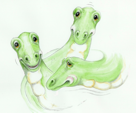 Little Glicker was so excited that she would have been twitching from head to toe … if she had toes (which she didn’t). She loved Christmas and everything about it. The lights, the food, the smells, the music, the snow …. Oh, my, the snow! Can you imagine what that’s like for a young sea dragon? (It doesn’t snow very often under the ocean.) She remembered that Nicker had told her about when he and Danny visited Marci in Michigan and went sliding in the snow.