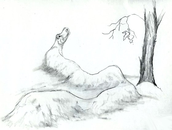 Before Danny could get on his coat, boots and mittens, Nicker had already taken a dive into the snow. For a while, all Danny could see was a sort of hump where Nicker was “swimming” under the snow – and gaps where Nicker went into a deeper dive. Danny would have asked himself, “How does he do that?” but he knew the answer. Nicker had already said it. “I’m a SEA DRAGON!”