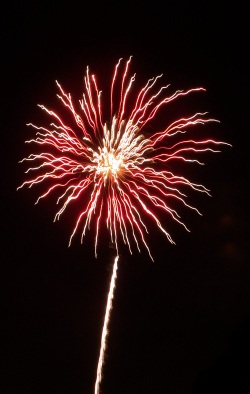 | Red, blue, green, white, yellow, purple, orange. All the colors glowed against the black sky, and trickled down, sparkled, and disappeared. If you’ve seen fireworks – even though Glicker hadn’t – you know what I mean. As they shot upward, many left the stems of sparks behind. WHOOSH BANG BOOM FLASH |