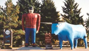 One idea was to let him go live at the Art Institute of Minneapolis. Some of Herman’s cousins already lived there. And as you know, Herman loved art. Finally, it was decided that he would go live with a friend of my sister. He was going to move to a town called Bemidji – although most people call if Brrrrrr-midji because it gets a bit cold there. (And it has Brrrr-midji State REAL University! I know because I went there once and even got to play piggie … but that’s a whole ‘nother story, for a whole ‘nother time.) Herman wanted to be around art, but he’d heard about a big man in those Brrrr-midji woods named Paul Bunyan, who had a big blue ox for a pet named Babe. Herman thought … “If this guy Paul likes big things, maybe he would like a big green plant … like ME!”