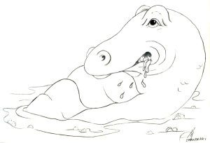 Nicker found a quiet pond. The sign said, “Marilou Marsh” on it, so he settled down in the water. If it had said something like, “Goose Landing,” he would have gone somewhere else, but it didn’t, and he didn’t, so there he was.