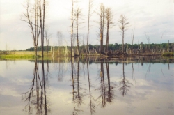 It looked like fun, but … do you remember what happened when Nicker ate the scary-berries? I sure do, and so did Nicker! Besides, the machine was noisy. Even the eagles went off to the high trees to watch from there. Nicker dipped low in the water so only his eyes showed, and those not by much. Ahhh, but people come to work and then they go home. They left the rectangle pond. It was covered with red berries floating in the water. More berries than Nicker had ever seen in his life. Some were white, some were pink – most were a bright red. |