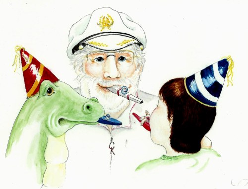 Well … even the best parties have to end, and so did this one. Captain Kazoo, Danny and Nicker sat together, remembering it all. Danny said, “I sure am glad you came, Captain Kazoo,” and Nicker nodded, too.
