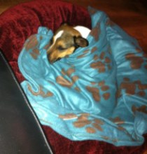 This is Stella. Stella is the dog who owns our good friends Kyle and Beth. (Stella says that they behave – most of the time.) With winter coming on, Stella was feeling a bit chilly so she told Kyle, “Fetch” and being a good human, he got her a blanket. “Good human!” she said.