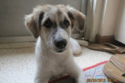 Lassie Sarreal lives in the Philippines with Rose Camama. As you can see, she is still very young. Lassie has a nice garden for play. She has two sisters – Ara Sarreal and Polka Sarreal. Rose wanted to give them a last name, and Sarreal is her own (human) father’s last name. So now there is a whole flock of dogs (if three is a flock) named after Rose’s (human) father.