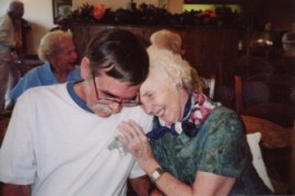 The photo is Gene and the real Edie, his mother, at a Nicker Show in Minnesota. Gene is wearing his Simon shirt. Edie is wearing the scarf she is also wearing in the story, "Lake Edie". |