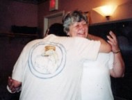 Here is Marci getting a well-deserved hug after that same Nicker Show, both for her part in that, and for the hand-painted Nicker shirt Gene is wearing. |