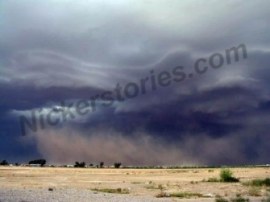 This was a summer storm in Arizona. Believe it or not, that photo is not retouched in any way. See the bird up in the sky? |