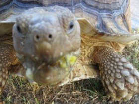 Gordie is a sulcata (sool-kaw-taw) tortoise. They are native to the Sahara Desert in Africa. You would like Gordie – but I don’t think you would want to have one. Why?