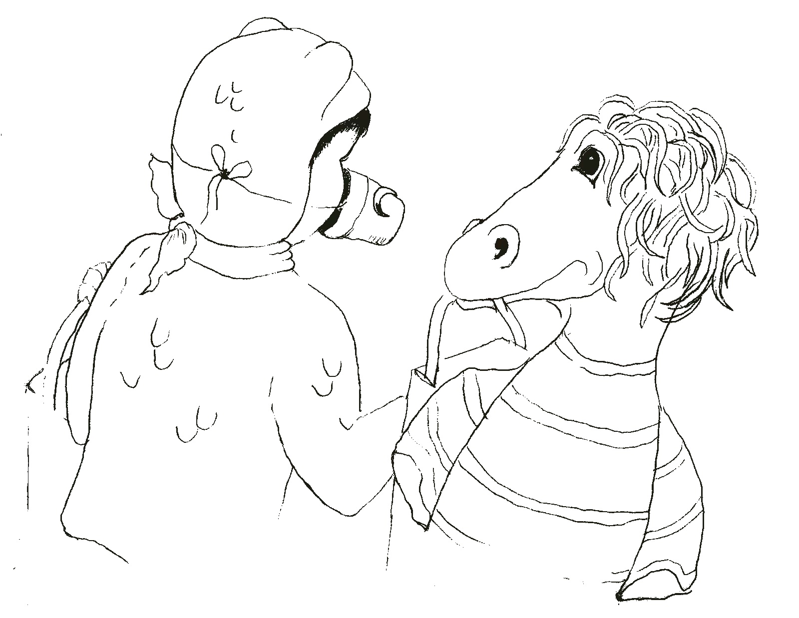 Which one is your favorite character? Nicker? Glicker? Simon? Danny? Gordie? One of the others? Here are three you can print and color. (Can you tell who they are?)